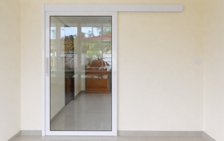 ประตูกระจกกั้นห้อง (ห้องนั่งเล่น – ห้องครัว)